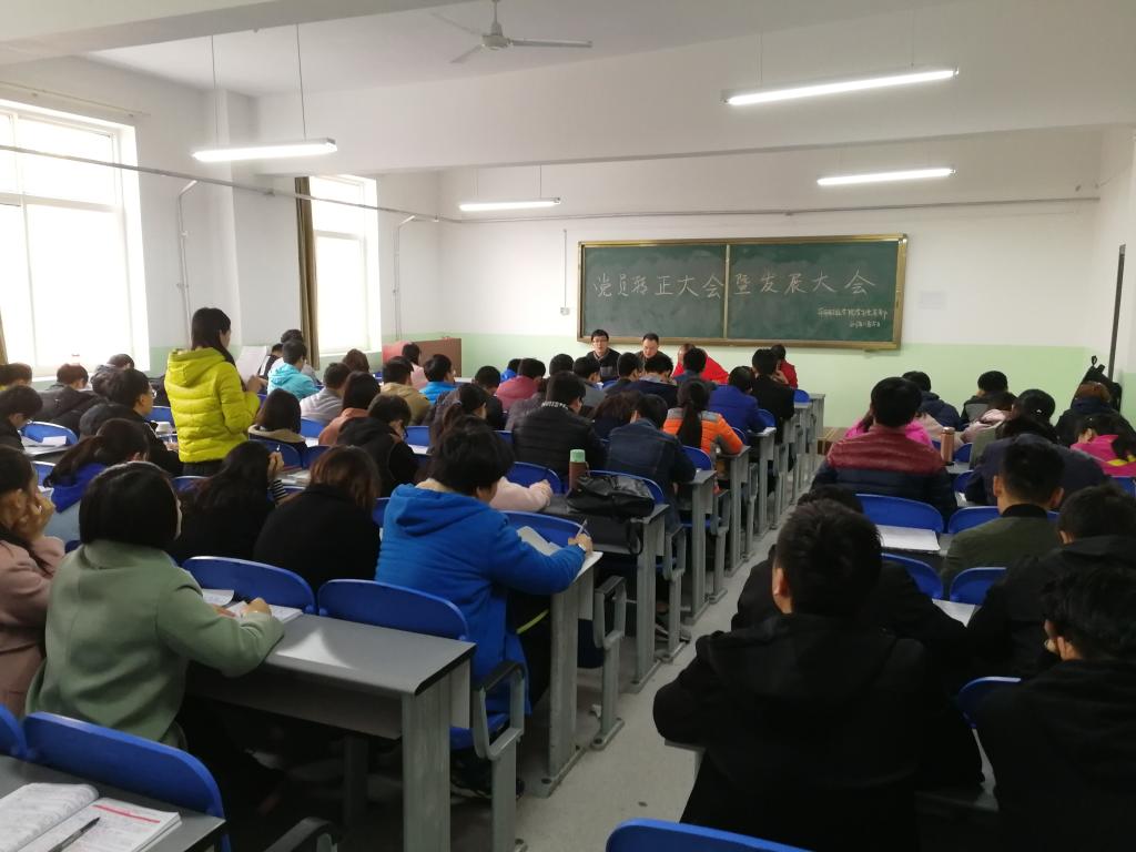 本次党员发展大会按照党章规定的程序讨论并投票表决通过了46名发展对象按期转为预备党员,10名预备党员按期转为正式党员的相关事宜,形成支部决议并报上级组织审批。随后,学生党支部书记罗伟带领全体党员共同学习了“十九大”会议精神。学院党总支书记邓北川同志做总结发言,他要求全体党员务必认真学习“十九大”会议有关精神并落实到自身的学习与生活中。思想上、行动上与党中央保持高度一致,严格要求自己,为同学服务,做学生表率,加强自我要求。