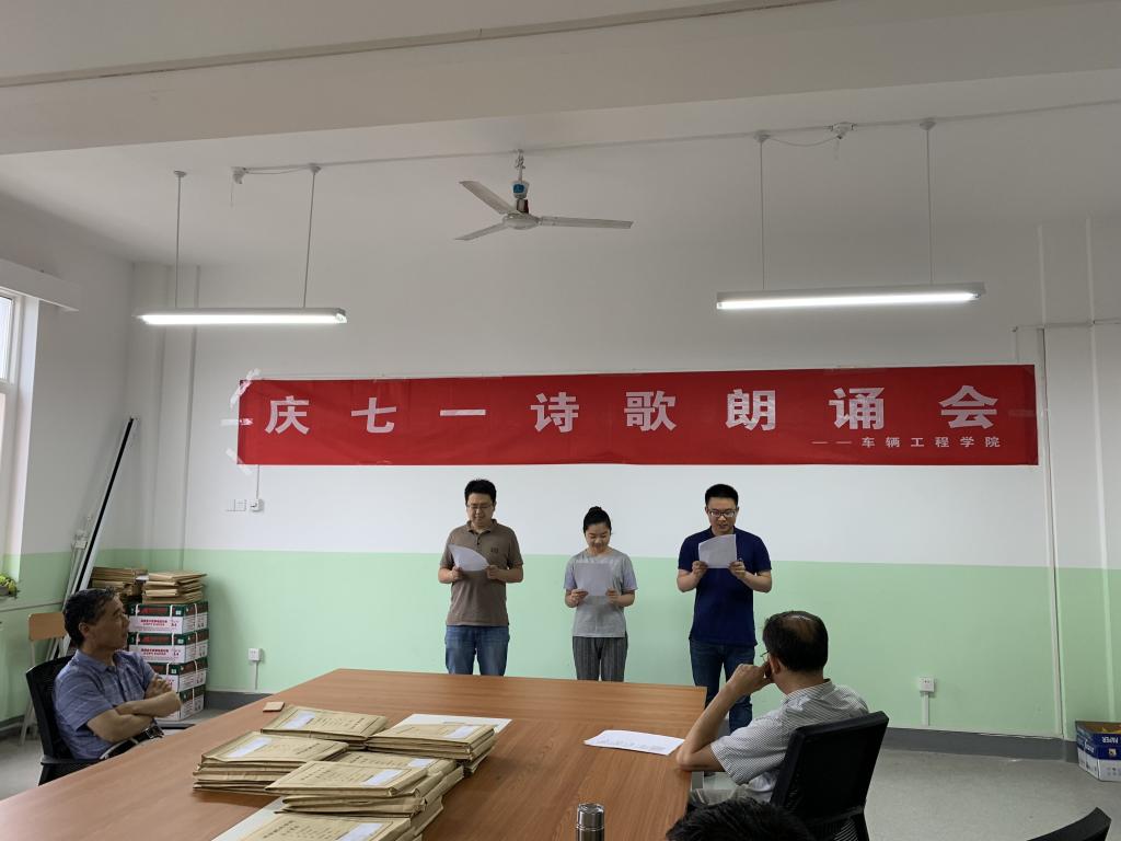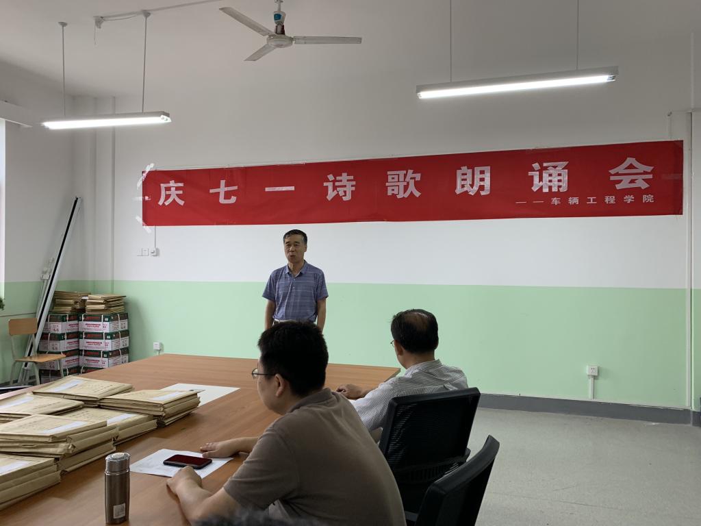 6月21日下午,世界杯体育官方网站在沣惠校区教学北楼343会议室举办首届庆七一诗歌朗诵会,朗诵会由李亭主持,全院教职工参加。