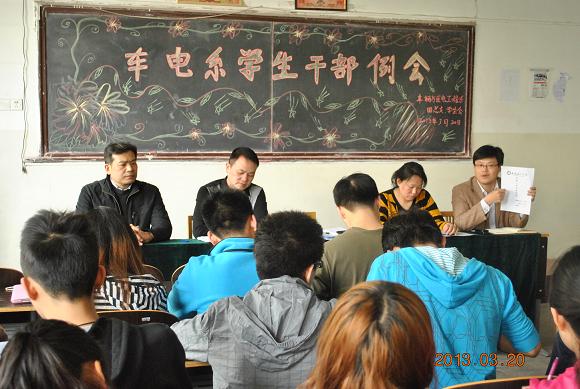3月20日下午4点,车辆与医电工程系召开2012-2013学年第二学期全体学生会干部大会。参加会议的有党总支书记邓北川、学生管理室主任罗伟及所有辅导员,会议由罗伟主持。