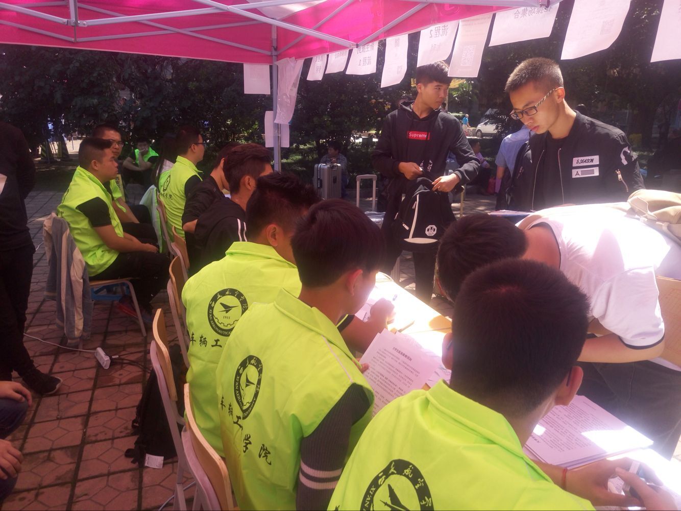 学生会成员统一穿着印有世界杯体育官方网站字样的绿色荧光志愿服,在校园里为新生和家长提供咨询和帮助。进行引导学生报名报到,安排学生住宿、通知学生军训等事宜。我们以最热情的服务、最温馨的微笑迎接来自不同地方,不同民族的2017级新生,让他们感受世界杯体育官方网站这个大集体的温暖。截至下午4点前,世界杯体育官方网站共计完成近400名学生的报名工作。