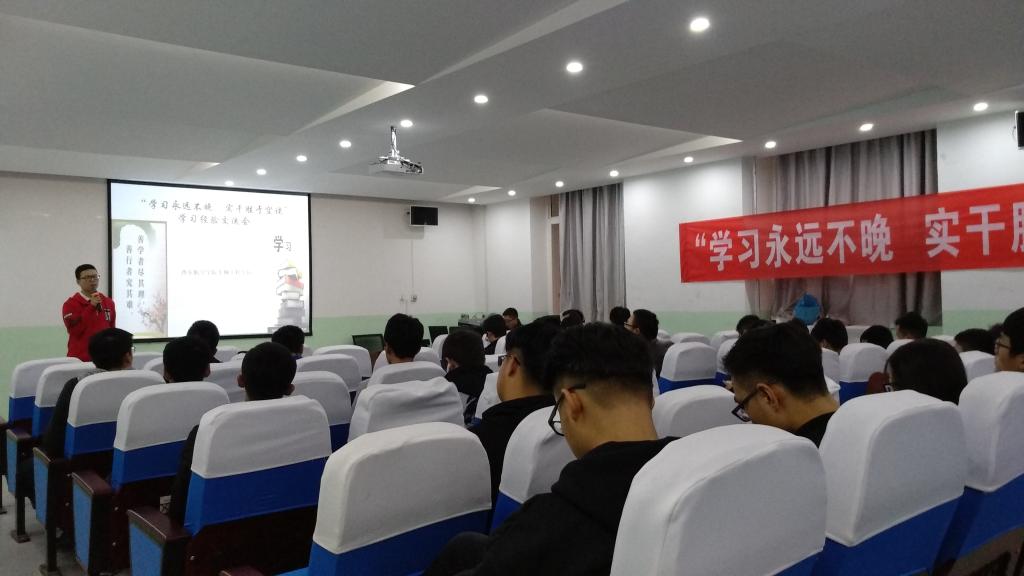 世界杯体育官方网站于11月16日16:00在南108开展“学习永不晚,实干胜空谈”学习经验交流会。各年级学生代表参加了本次交流会。会议由学生管理科科长罗伟主持。