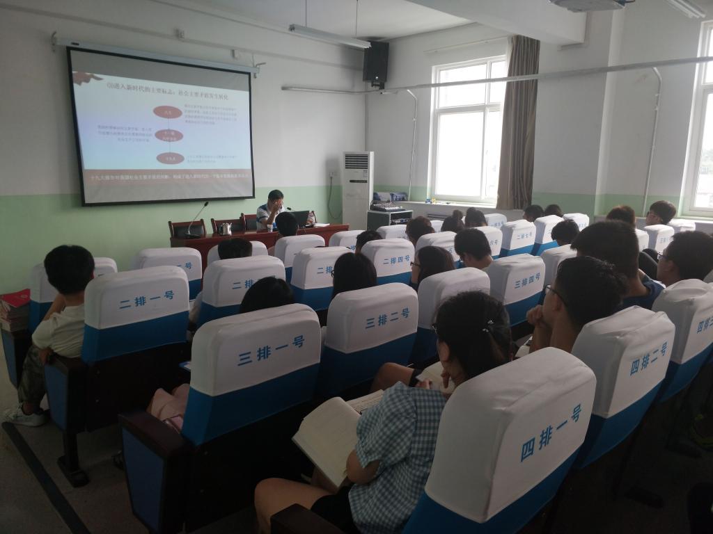 2018年6月27日下午16:30在北楼447教室由于思月老师组织世界杯体育官方网站积极分子、发展对象以及非毕业班党员集中上党课,学习十九大报告,解读十九大精神。课程由思政部教师王国成讲授。
