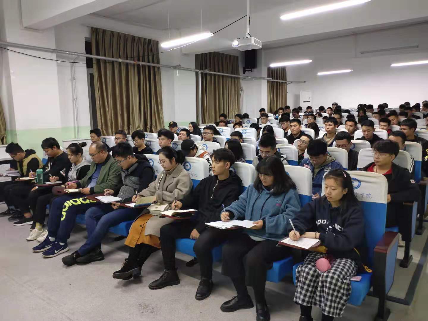 首先,邓北川就当前国家对高等教育的要求及高校工作应该以本为本,以生为本,做到回归常识、回归本分、回归初心和回归梦想的要求,培养“德、智、体、美、劳”全面发展的合格的社会主义建设者和接班人的目标。告诫每一位同学,以前混日子的大学生活一去不复返,要让学生忙起来,学校严格执行相关学籍管理等规定。其次,分析了我院目前的学风状况。一部分学生丢失了本分,缺少学习主动性和积极性,存在着混毕业的想法。着眼于“安全、适应、素质和能力”这4个方面,适应新时代新要求。开展关于学风的讨论,从思想上充分认识学风的重要性和严峻性,形成共识后从行动上坚持一日作息制度和课堂秩序,要做到坚持不懈,从点滴开始改善自身的学习习惯。最后,对所有学生干部提出了相关要求。从自身做起,要勇于担当和作为,起到模范带头作用。在平时工作中,切忌官本位思想,提升自己的服务意识,做好引导示范工作。同时要充分发挥团学组织和新媒体的作用,做好宣传、教育和引导工作,正确处理好学生工作和自身学习的关系。