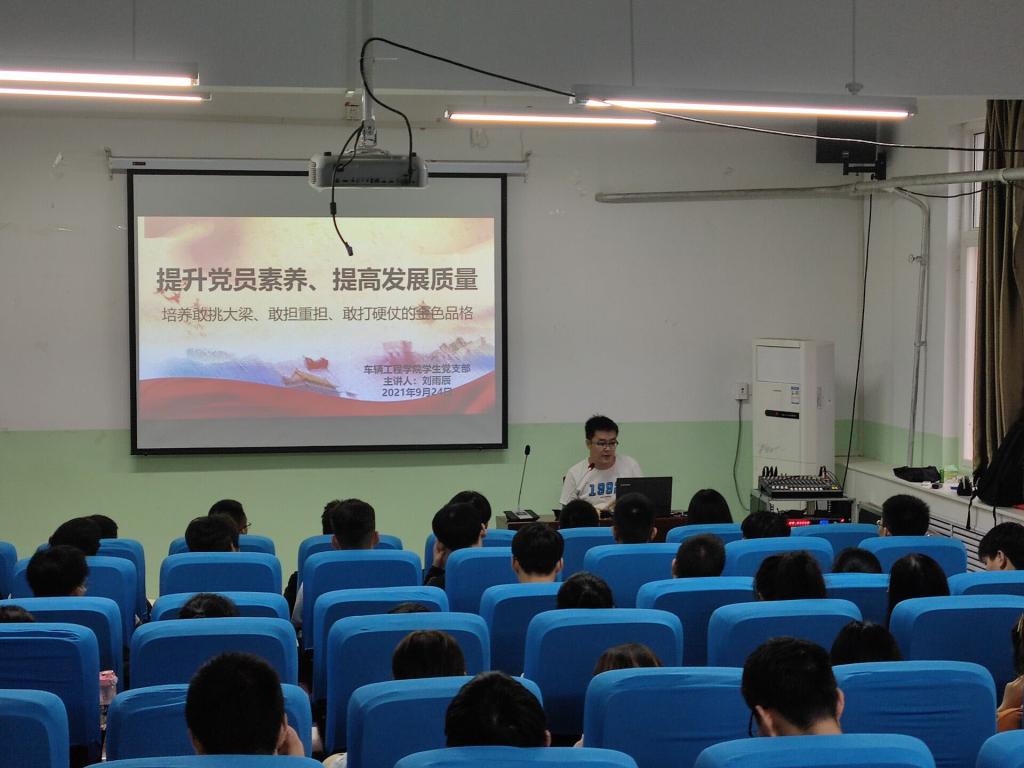 9月24日下午,世界杯体育官方网站在北447教室组织开展“提升党员素养、提高发展质量”主题党课。学生第三党支部书记刘雨辰担任主讲,学院全体学生党员参加。