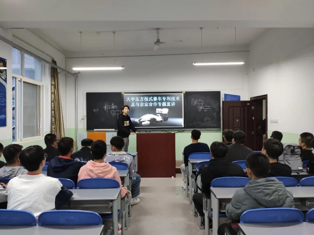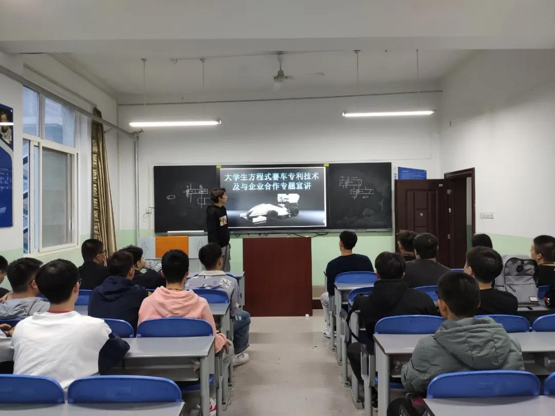 本次讲座的主题为“大学生方程式赛车专利技术及与企业合作专题宣讲”。活动开始,一方面介绍了方程式赛车的相关技术指标,另一方面鼓励同学们按照“一万小时”定律进行学习和奋斗:“人们眼中的天才之所以卓越非凡,并非天资超人一等,而是付出了持续不断的努力,只要经过一万小时的锤炼,任何人都能从平凡变成超凡。”而大学学习生活设置四年的原因也正符合这一万小时定律,所以,同学们应该充分利用这最佳学习时间,学习专业知识,丰富自己的专业技能,以便日后能够更好的立足社会。