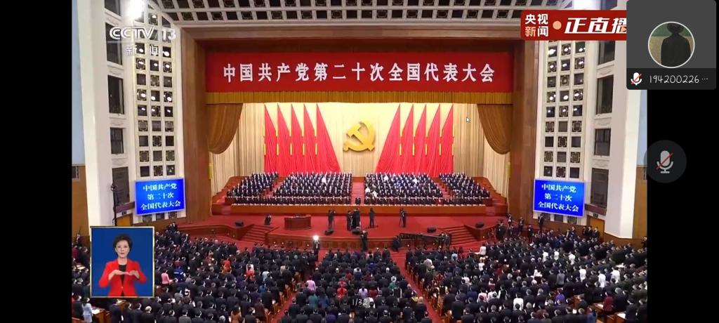 10月16日,中国共产党第二十次全国代表大会在京召开,习近平总书记代表第十九届中央委员会向大会作报告。世界杯体育官方网站学生党支部通组织全体学生党员观看开幕会直播。