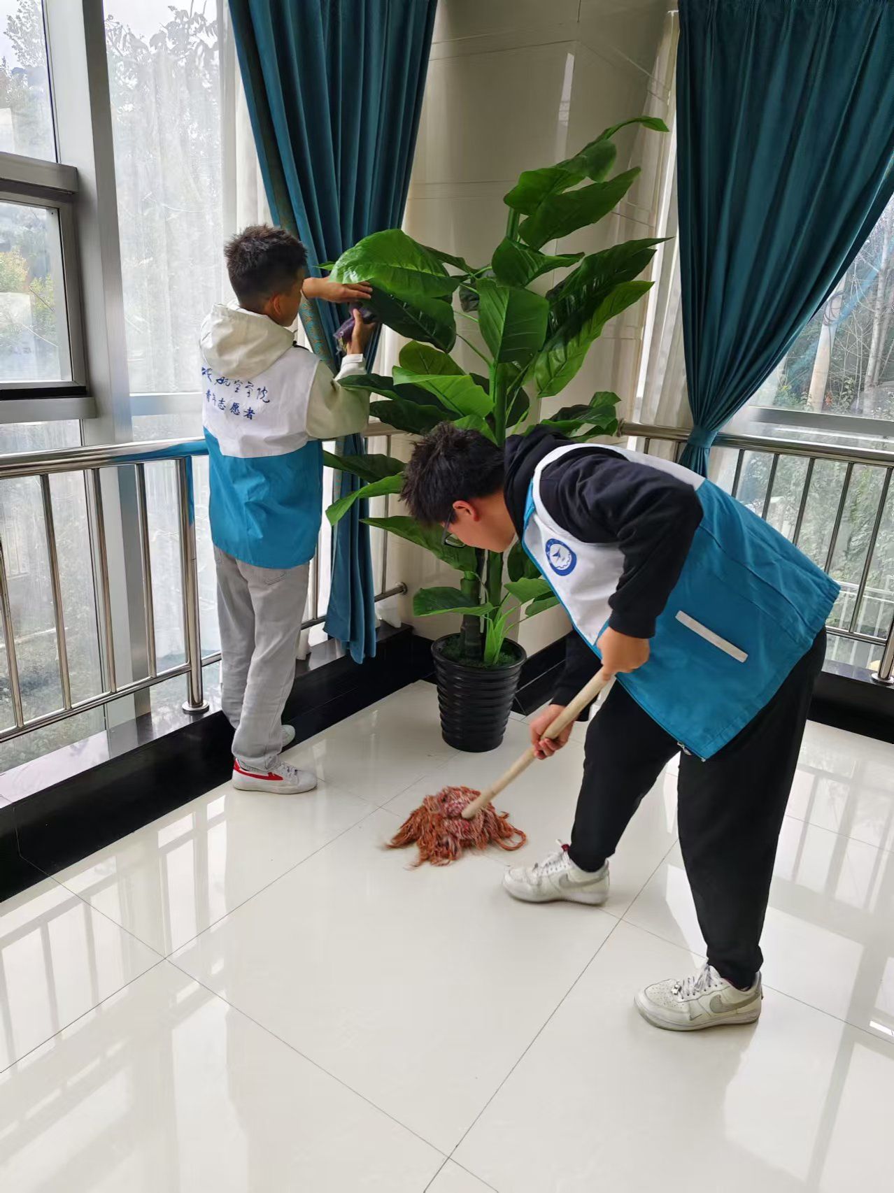 世界杯体育官方网站积极响应国家关于加强大学生社会实践和志愿服务的号召,10月19日下午组织学生走进西安市阎良区中心敬老院,开展了以“秋日暖阳,心手相连”为主题的志愿服务活动,用实际行动诠释尊老爱老的传统美德,传递青春正能量。活动当天,志愿者中队的35名志愿者同学在工作人员的指导下,积极参与到养老院的日常维护和老人陪伴中,用青春的热情和耐心的陪伴,为老人们带去了如阳光般的温暖。志愿者们分工合作,一部分志愿者负责清洁工作,细心打扫活动厅、会议室和院落,确保老人们的居住环境整洁舒适。另一部分志愿者则与老人们亲切交谈,分享生活趣事,倾听他们的故事,传递青春的活力和温暖。