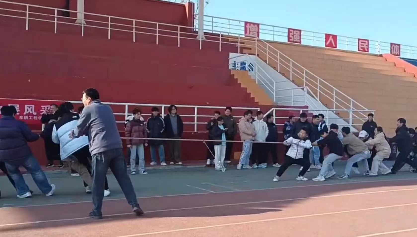 为丰富课余生活,营造浓厚的运动氛围,增强学生身体素质,学院于12月31日13:00在阎良校区田径场举办师生拔河及跳绳比赛,本次比赛旨在增进师生间交流互动,丰富校园文化生活,展现运动的魅力与风采。