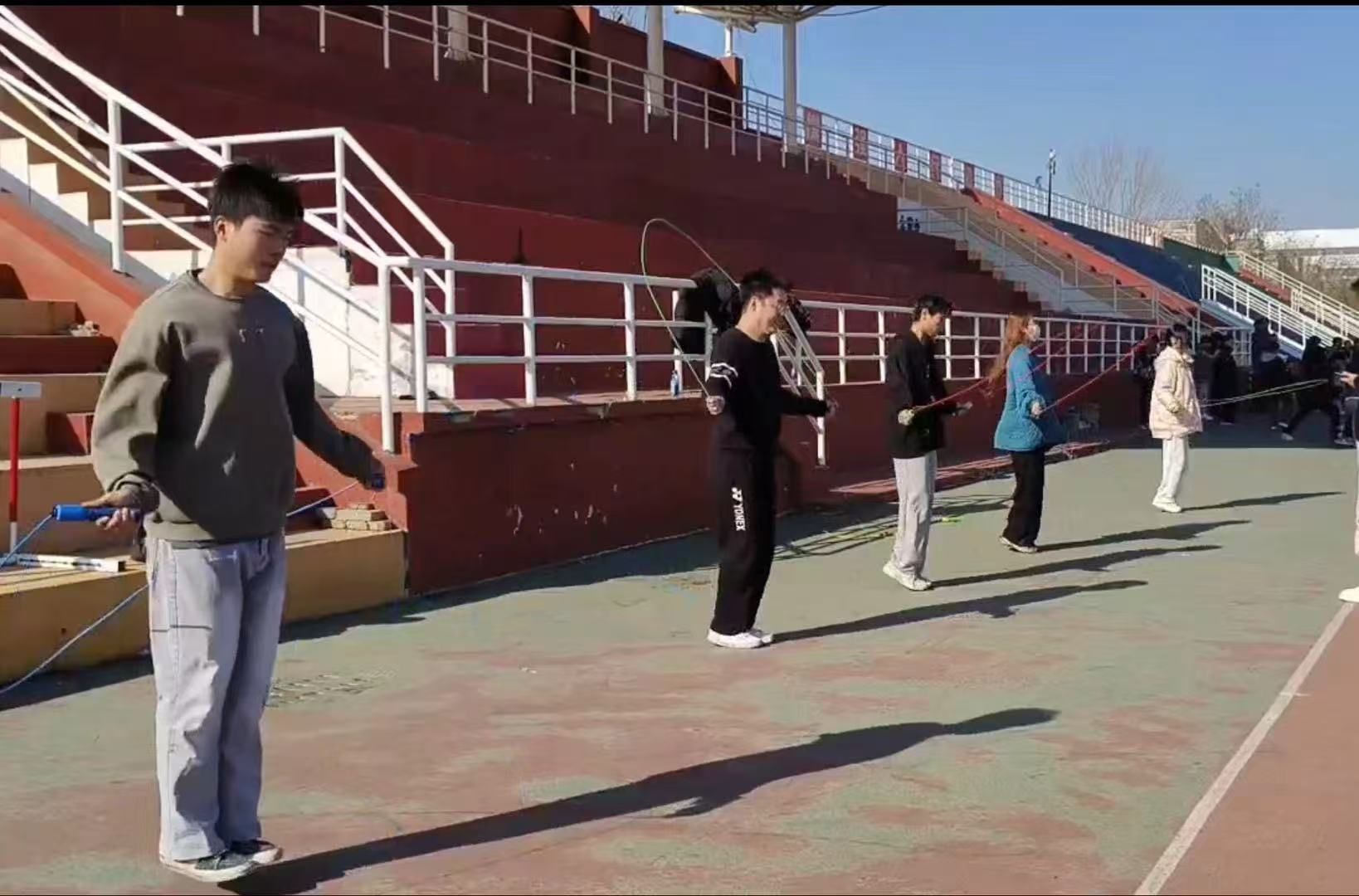 大小绳比赛中,师生们同样展现出不凡的实力与竞技状态。参赛队员们连贯的节奏,默契的配合,是团队精神和毅力的体现。比赛现场气氛热烈,教师们个个精神抖擞,身手矫健,同学们展现出青春的活力和运动的风采,大家都以饱满的热情投入其中,各显身手。最终,教师代表队赢得跳绳比赛冠军。