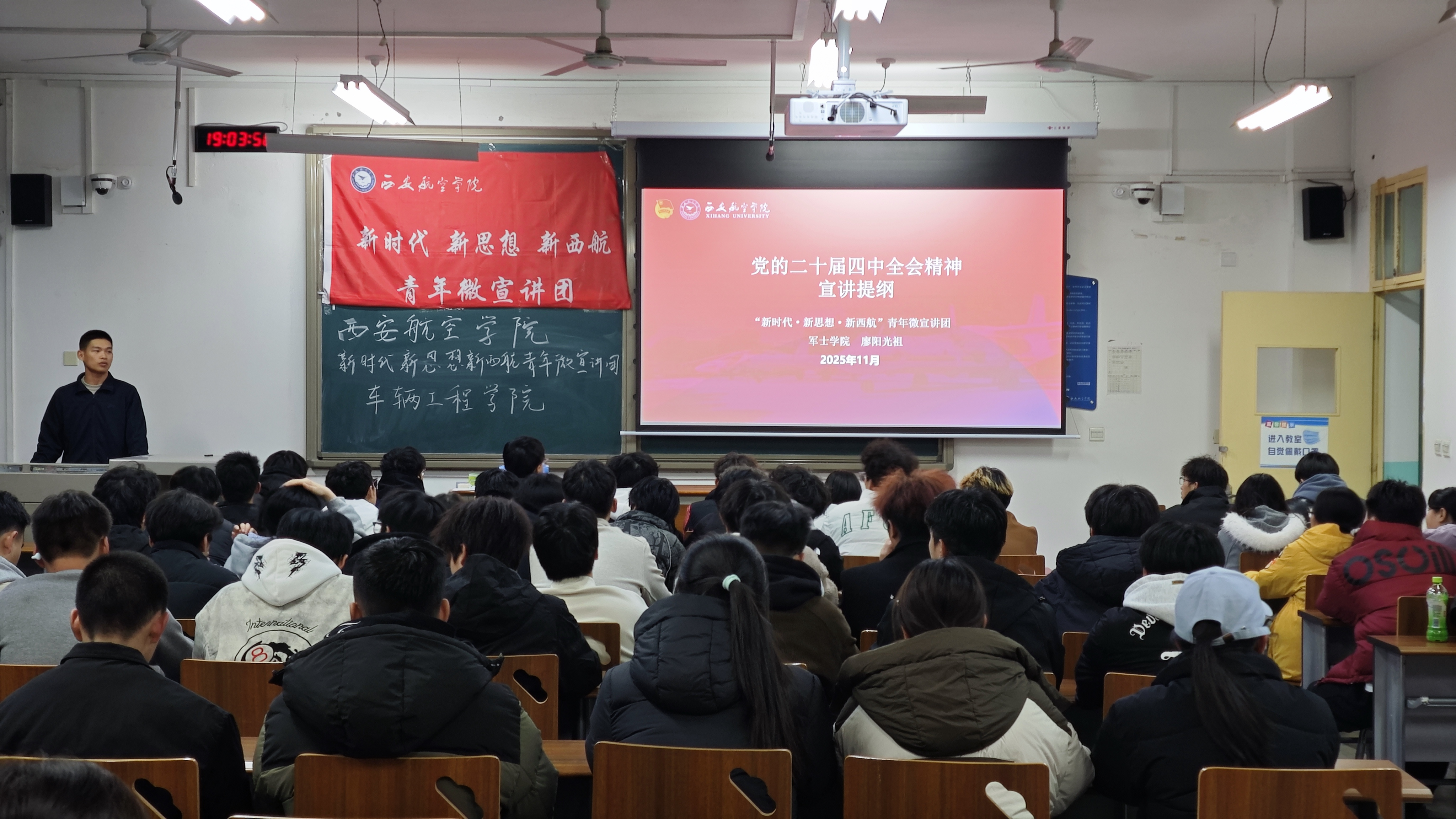 11月27日19:00,世界杯体育官方网站邀请“新时代新思想新西航”青年微宣讲团成员开展主题团课。本次团课以“深化理论武装、联动专业发展、锚定青年责任”为主线,旨在推动团员青年将理论学习与专业成长紧密结合。