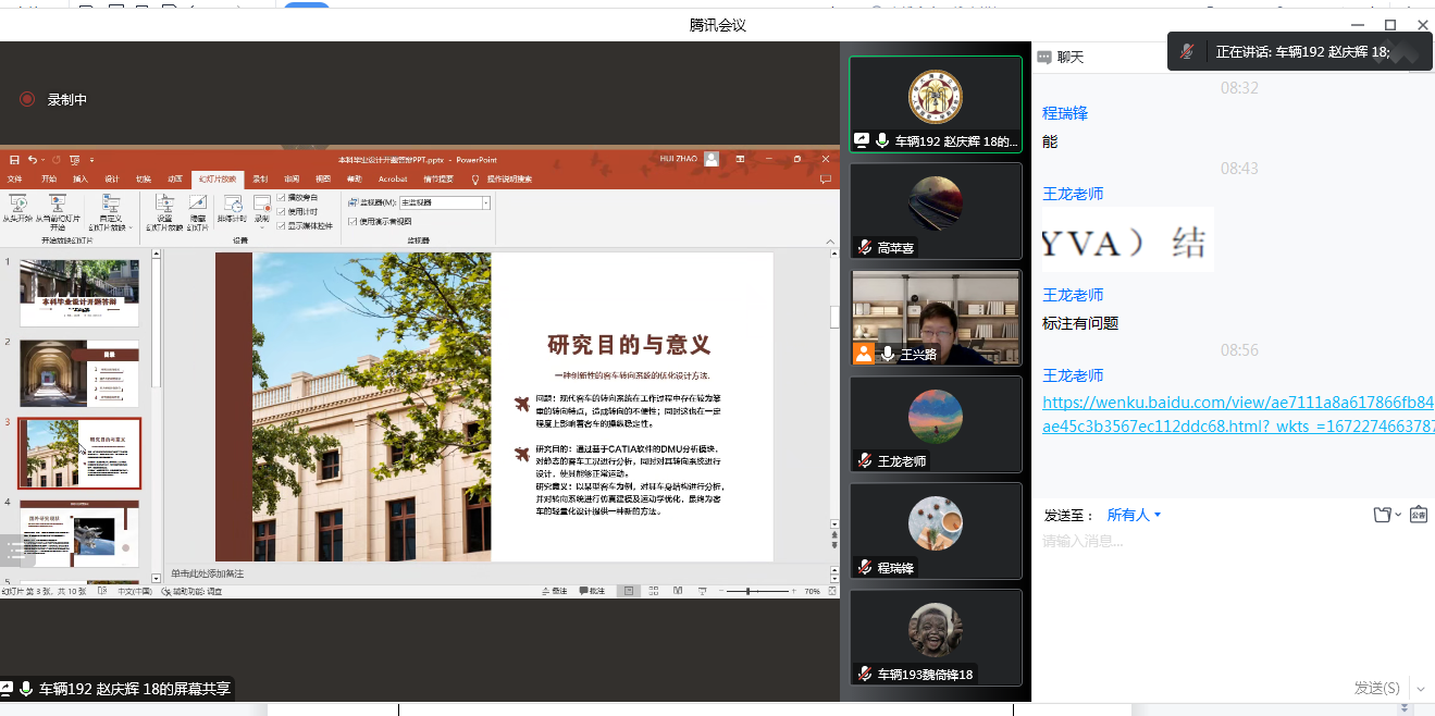 2023届本科毕业设计工作于2022年11月份启动以来,按计划完成了毕业设计动员会、指导教师出题、专家审题、撰写任务书、学生盲选题目等环节。原计划12月初完成开题答辩工作,但考虑到疫情防控、研究生考试的具体情况,学院对开题答辩工作进行了调整。12月29日和30日,车辆工程专业分5组、汽车服务工程专业分4组分别完成毕业设计开题答辩工作。学生从选题的目的和意义、国内外现状的研究及个人毕业设计主要内容和任务安排通过线上PPT进行介绍,答辩教师通过询问问题检查学生对题目的认识和理解是否合适,并给出建议和意见,各答辩小组秘书将学生答辩情况进行详细记录和反馈。整个答辩过程井然有序,反映出车辆工程和汽车运用教研室组织缜密,安排合理。