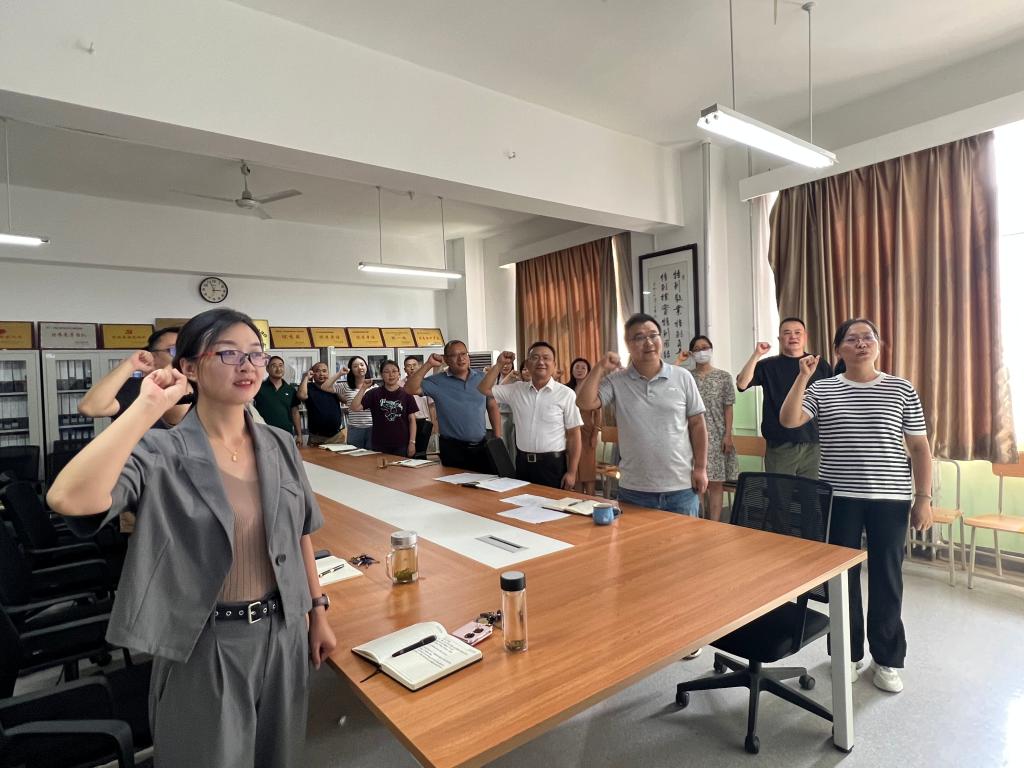 9月8日下午全院大会上,党总支书记、副院长周小勇带领全体教职工共同学习了习近平总书记在中共中央政治局第五次集体学习和在北京育英学校考察时的重要讲话精神。引导广大教师深刻认识在教育强国、科技强国、人才强国建设中肩负的光荣使命与重大责任,以人民教育家为榜样,牢固树立“躬耕教坛,强国有我”的志向与抱负,以培养堪当民族复兴大任的时代新人为己任,全员全方位全过程强化师德养成,争做“四有”好老师和“四个引路人”,努力培养更多德智体美劳全面发展的社会主义建设者和接班人。会上,全体教师庄严宣誓,铿锵有力的誓言宣告着为党的教育事业奉献全部力量的决心和信心。